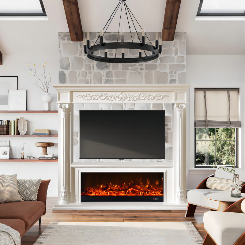 Wholesale Livingroom Entertainment Wall Unit TV Stand with Electric Fireplace manufacturers and pricelist Fireplace Very well made.
