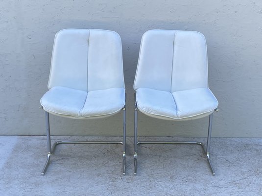 White Leather and Chrome Dining Chairs 1970s Set of 2 for sale at Pamono Very well made.