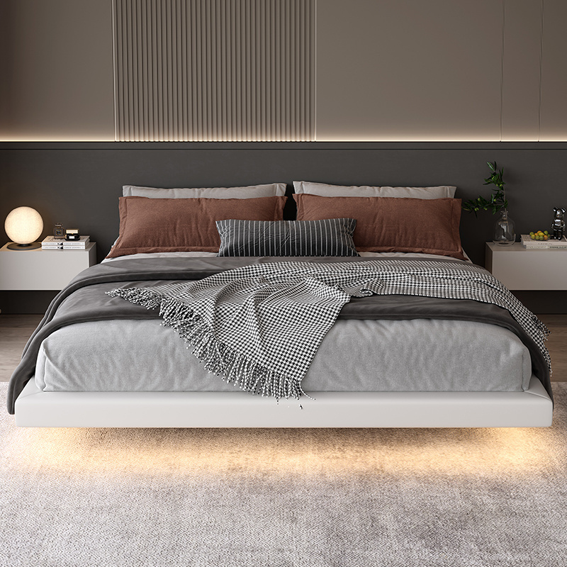 Upholstered No Headboard Floating Bed Synthetic Leather Hotel Bed Base Double Bed Frame King Queen Size BestSuppliers Very well made.