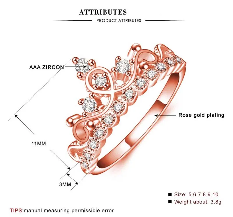 DHgate Rose Gold Diamond Crown Ring Elegant 2024 Engagement Ring for Women Jewelry Very well made.