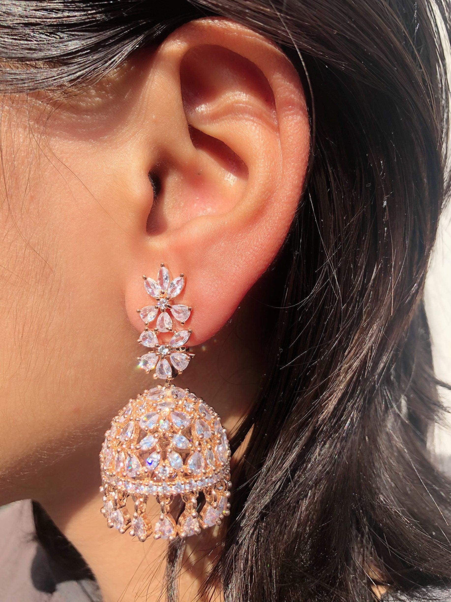 Rose Gold Diamond Jhumki Small Jhumka Indian Jewelry Pakistani Jewelry Indian Earring Tito s Fashion House Very well made.