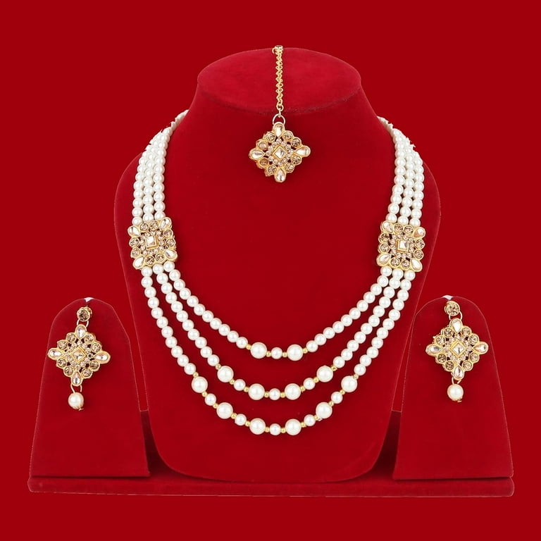 Gold Plated Choker Necklace Set with Maang Tikka for Women Online Sujwel Sujwel Very well made.
