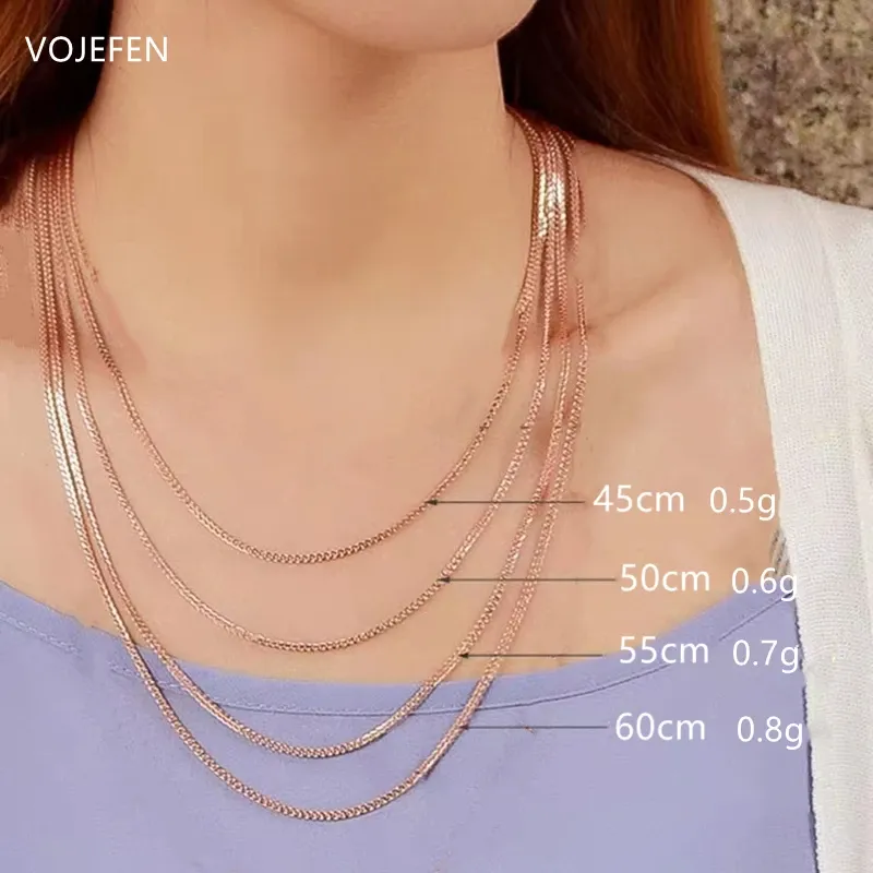 VOJEFEN 18k Real Gold Rope Chain thin chain necklace Luxury Female Jewelry for Kids and Women AU750 Long Necks Wholesale Choker Very well made.