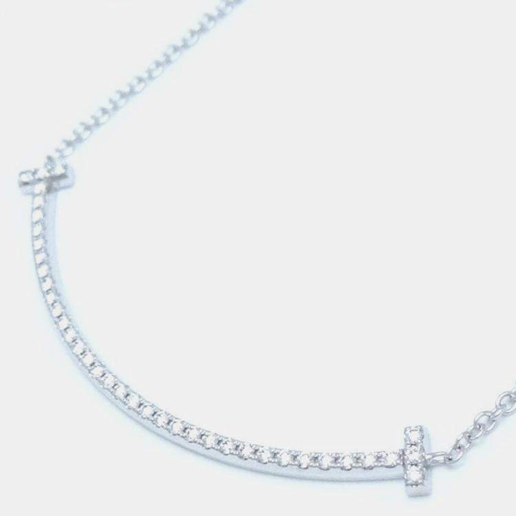 Tiffany T Medium Smile Pendant in White Gold with Diamonds Tiffany Co. UK Very well made.