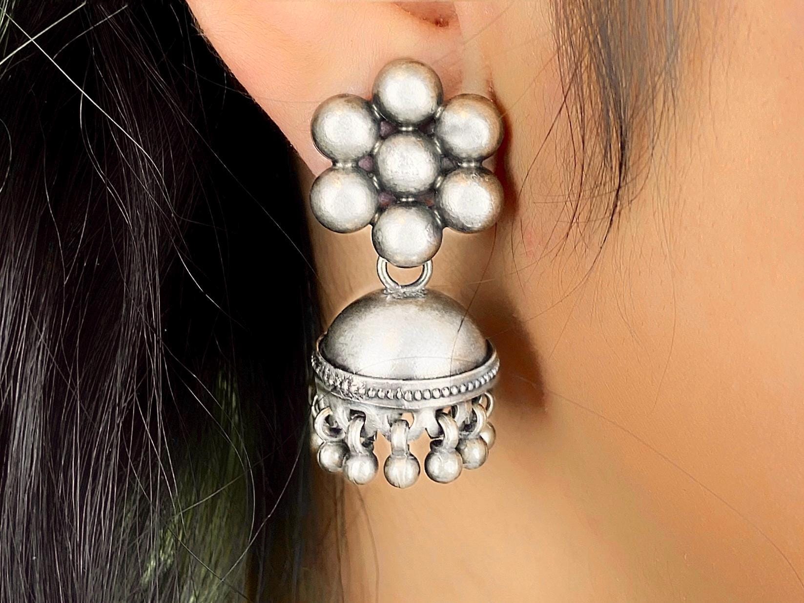 Silver Jhumkas Traditional Indian Earrings for Women Very well made.