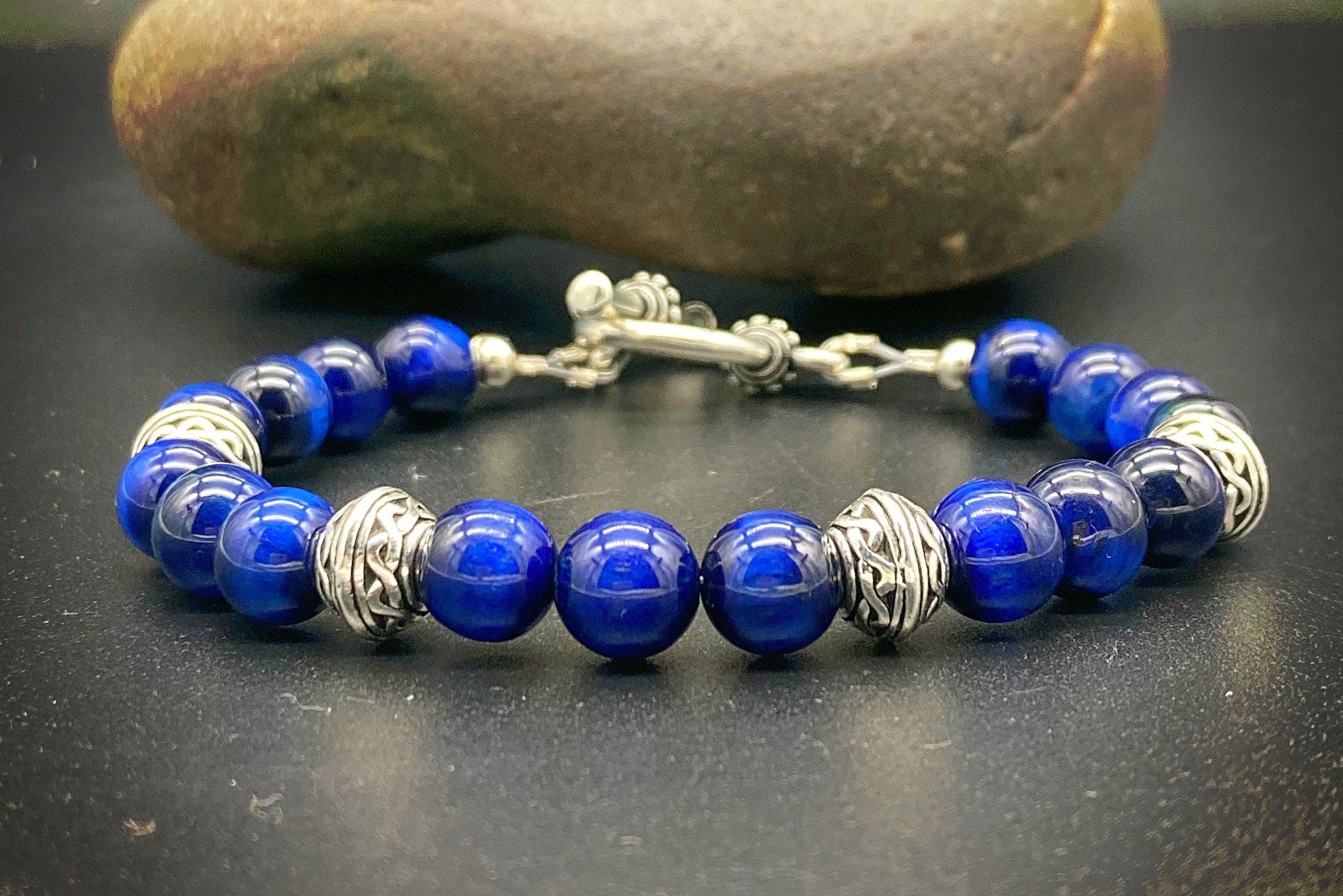 Mens Beaded Bracelet Blue Etsy Very well made.