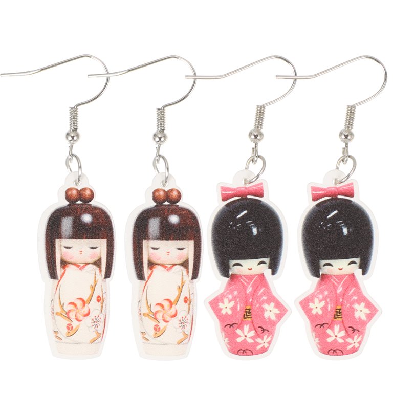 2 Pairs Kimono Doll Pendant Earrings Acrylic Earrings Japanese Kawaii Jewelry Walmart Very well made.