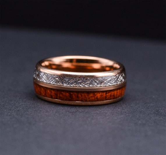 Mens wedding band 8mm Rose Gold Plated Tungsten Ring With Meteorite And koa Wood Inlay Wedding band mens Men wedding band Etsy Very well made.