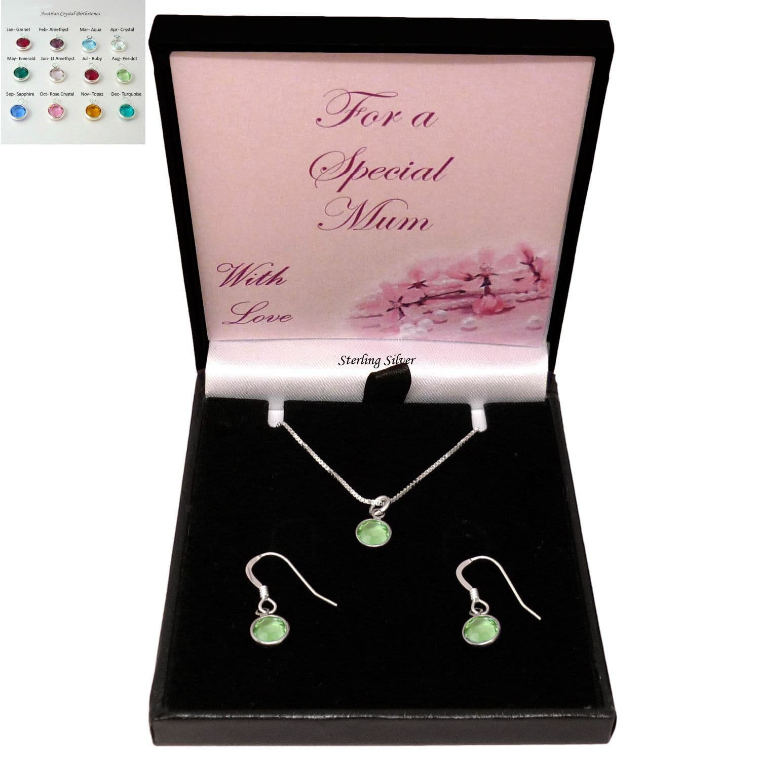 Birthstone Jewellery Set 925 Silver Necklace Earrings Gift for Sister Daughter. Jewels 4 Girls Very well made.