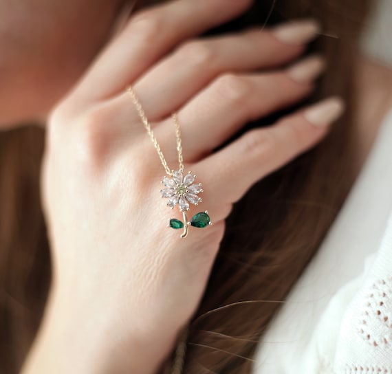 Daisy Necklace With CZ Diamond Flower Diamond Necklace Bridesmaid Gift Christmas Gift for Daughter April Flower Pendant Cubic Zirconia Etsy Very well made.