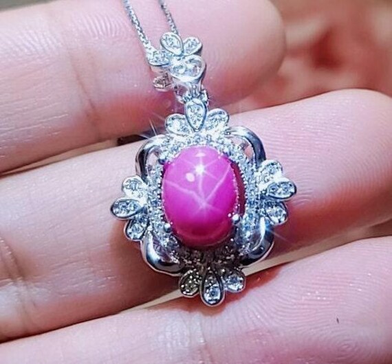 Star Ruby Necklace Gemstone Royal Flower Ruby Pendant 18kgp Sterling Silver July Birthstone 749 Very well made.