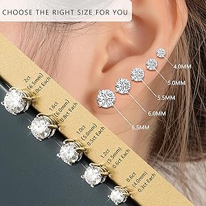 KRKC 2 1 Carat Diamond Earrings Alternative 925 Silver Stud Earrings Moissanite in White Gold 14K Gold 5 6.5 mm Earrings Stud Design as Gifts for Men and Women Rose Gold Moissanite Amazon Fashion Very well made.