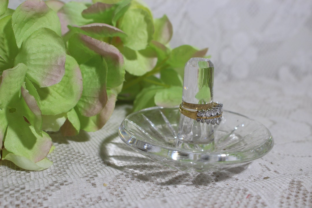 Vintage Cut Glass Ring Dish Small Round Glass Ring Holder Geometric Floral Pattern by Royal Reality Etsy Very well made.