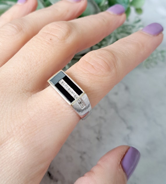 Vintage 9ct White Gold Onyx Diamond Signet Ring. Size T EU 61. Free Resizing. Vintage Jewelry Jewellery. Gents Mens Ring. Wedding Etsy Very well made.