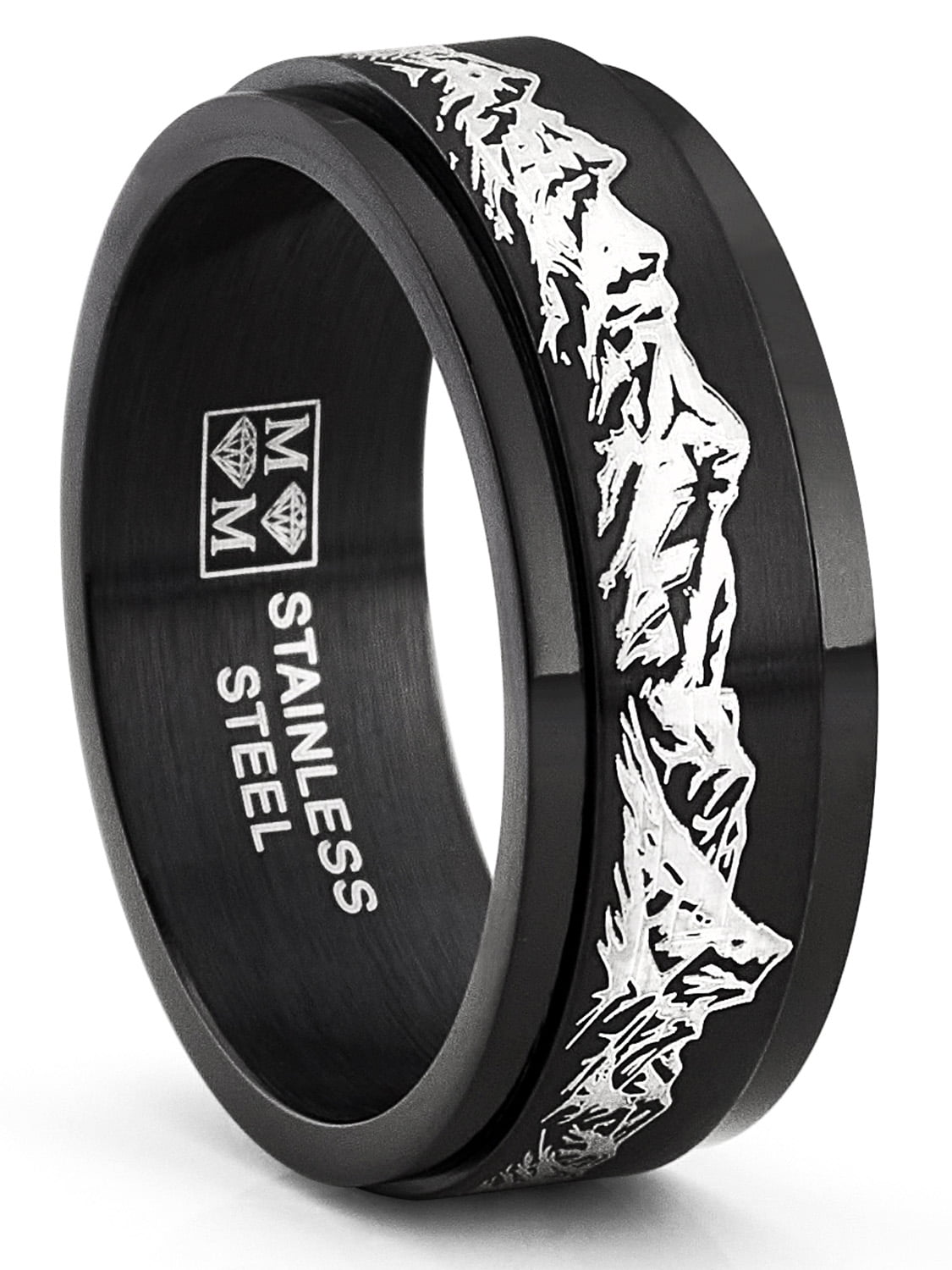 Metal Masters Men s Black Stainless Steel Fidget Ring Anxiety Wedding Band Outdoor Engraved Mountain Walmart Very well made.