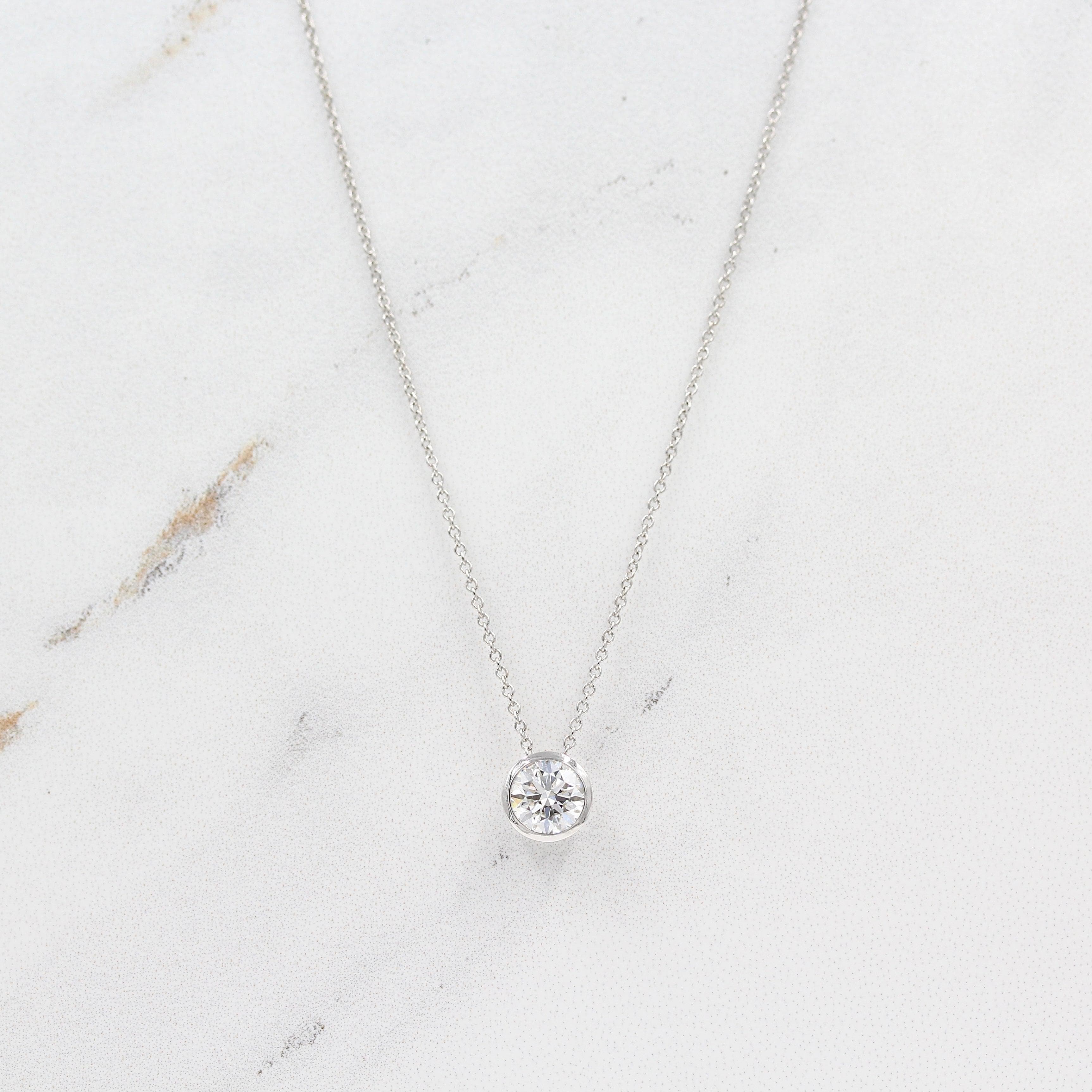 Lab Grown Diamond 1ct. Round Brilliant 14K Bezel Pendant White White 14K White Gold Very well made.