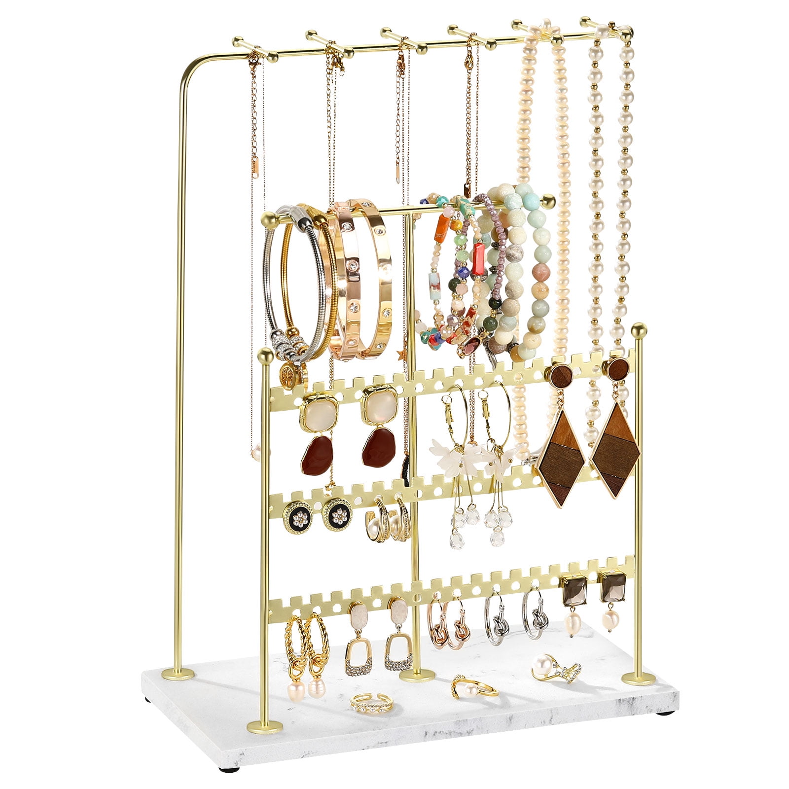 Emibele Jewelry Organizer Stand 5 Tier Jewelry Holder Necklace Hanging Storage T Bar Bracelet Stand Earrings Display Rack Metal Jewelry Tree Tower with Resin Ring Tray Gold Walmart Very well made.