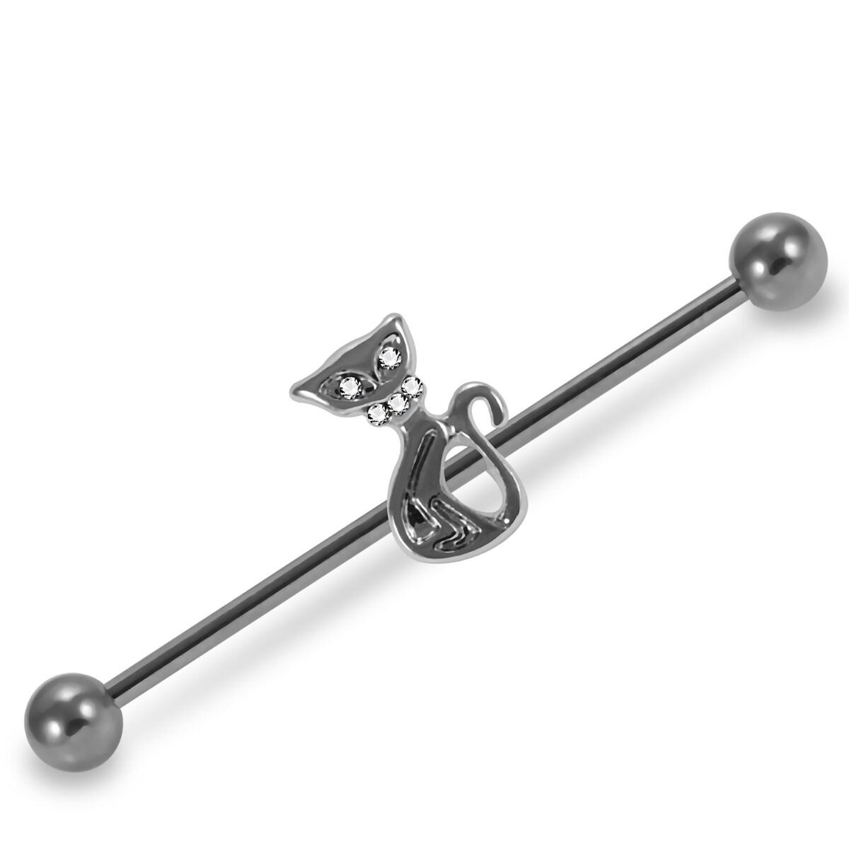 Steel Industrial Barbell Jeweled Cat Ear Piercing Jewelry Very well made.