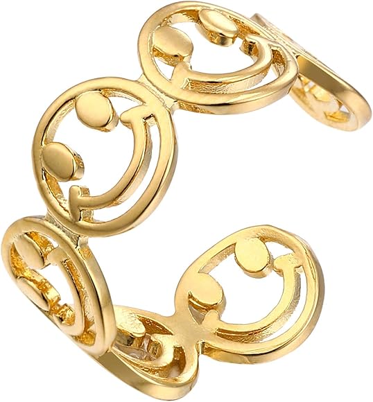 Aukmla Smiley Face Ring Gold Adjustable Open Rings Smile Ring Happy Smiling Finger Rings Jewellery for Women and Girls Copper Amazon Fashion Very well made.