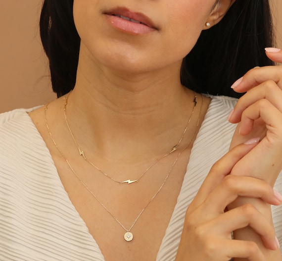 14k Solid Gold Lightning Bolt Necklace 14K White Gold Rose Gold Minimal Design Choker Dainty Choker Necklace Layering Necklace Briella Etsy Very well made.