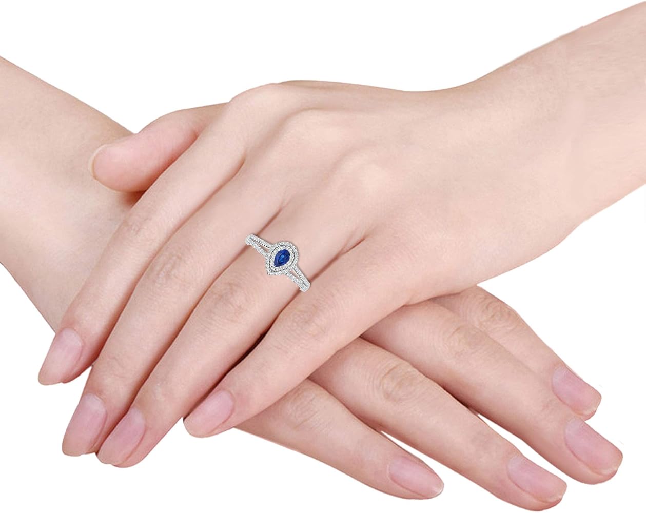 Inspereza 3 4 Carat 10K White Gold Blue Sapphire and Diamond Pear Shape Double Halo Engagement Ring For Women H I Color I2 I3 Clarity Ideal Engagement Ring Amazon Very well made.