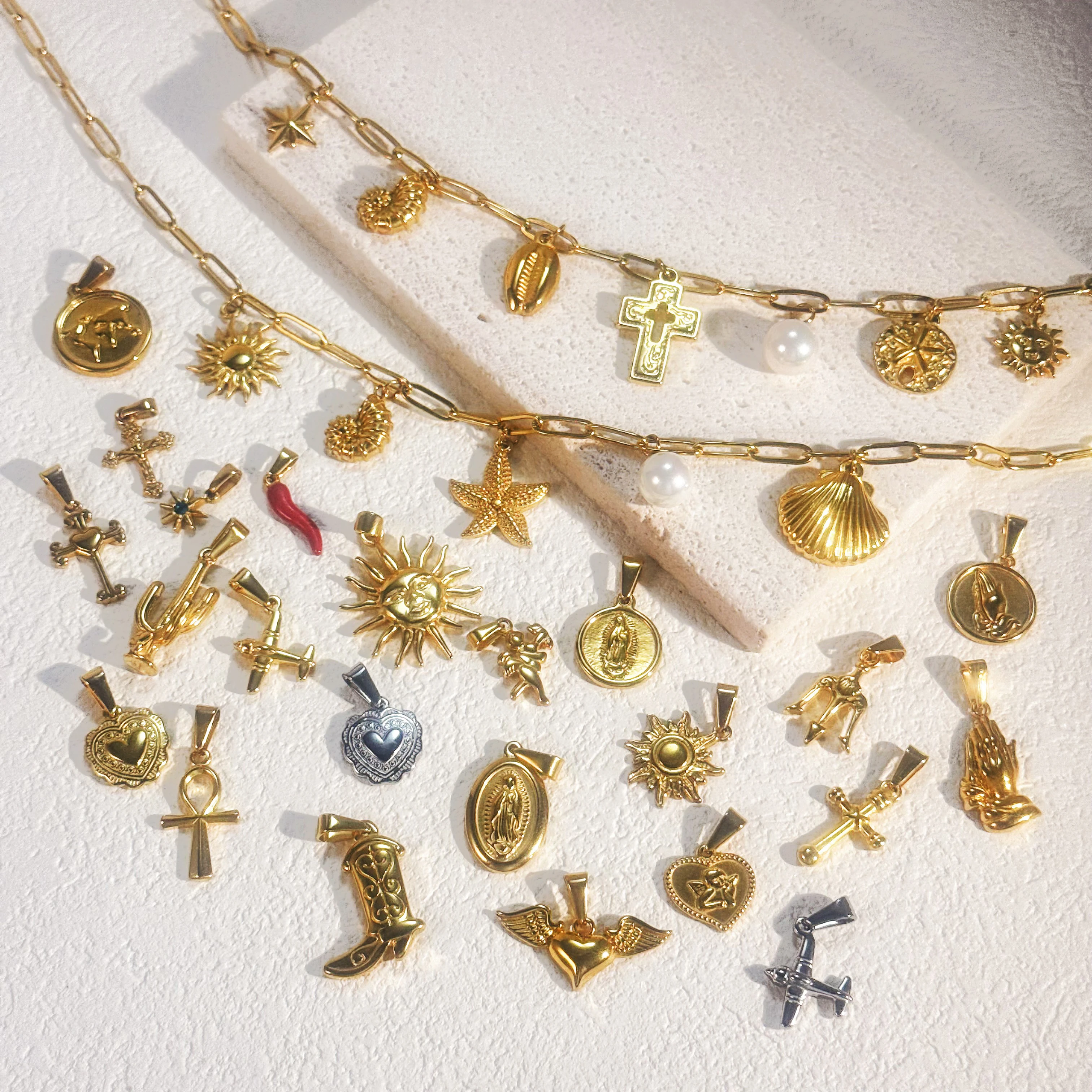 Fashion Pendants Charms Ocean Beach Jewelry Cross Heart Sun Stainless Steel Pendants Wholesale Custom Charm Necklace Accessories Very well made.