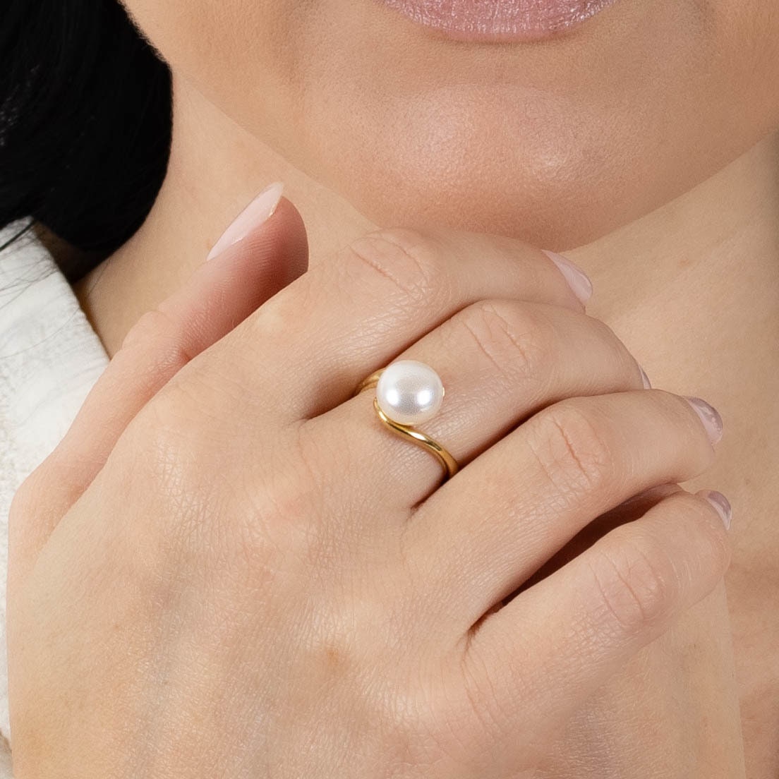 Gold Pearl Ring Modern Pearl Ring Solid Gold Ring 14K Gold Ring Bypass Gold Ring Pearl Engagement Ring Solitaire Pearl Ring Twist Very well made.