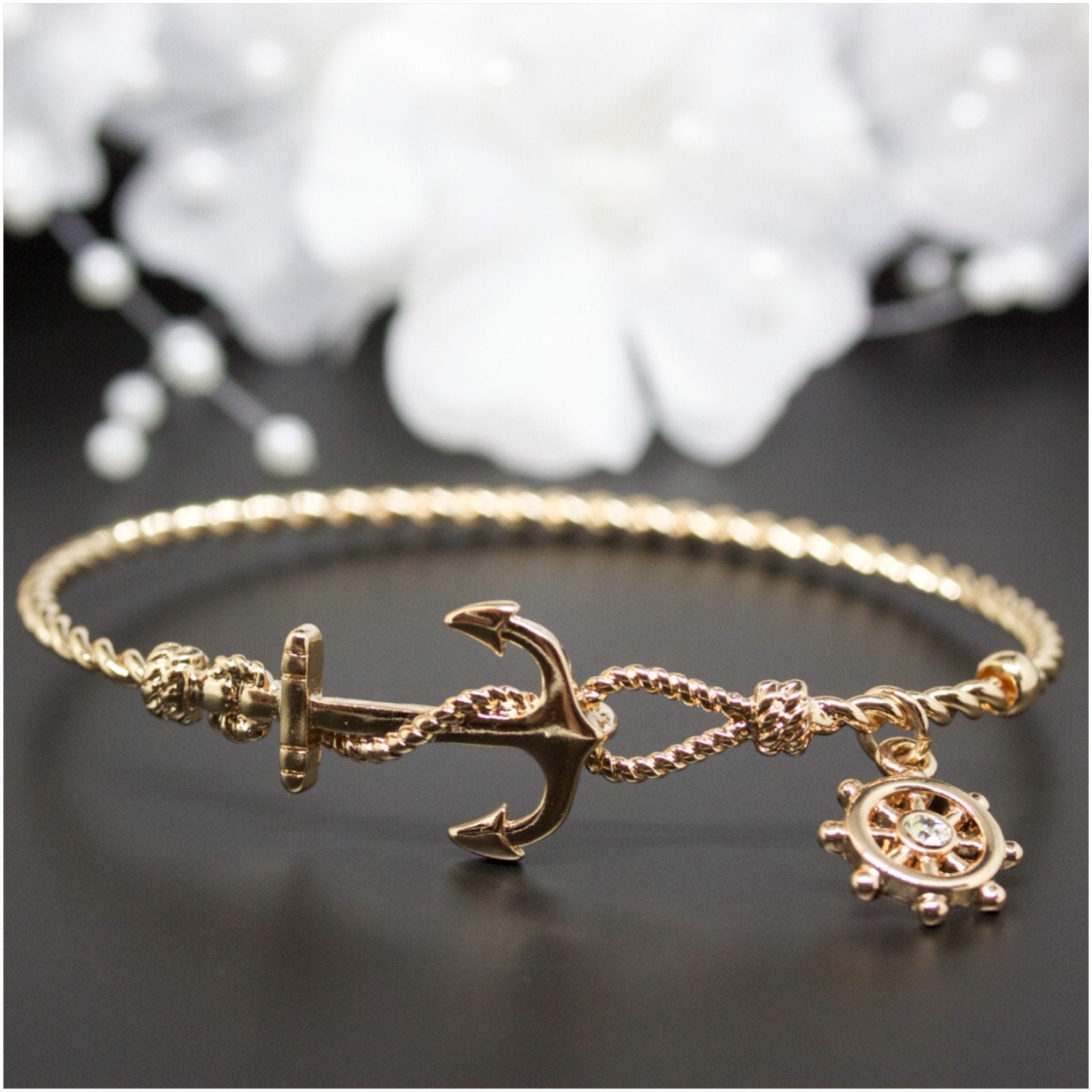 Rose Gold Nautical Anchor Bangle Bracelet Rose Gold Plated Bangle Bracelet Birthday Gift Thank you Gift Bridesmaid Gift RG B015 Very well made.