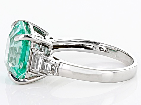 Green Lab Created Spinel Rhodium Over Silver Ring 6.48ctw Very well made.
