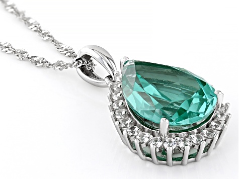 Green Lab Created Spinel Rhodium Over Sterling Silver Pendant with Chain 6.18ctw Very well made.