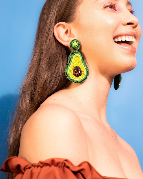 AQUAMALA Avocado Drop Earrings Summer Accessories Handmade Earrings Statement Earrings Fruit Earrings Tropical Very well made.