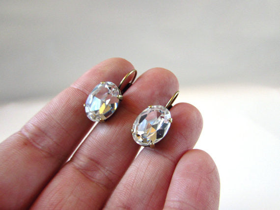 Clear Swarovski Crystal Earrings Medium Oval Very well made.