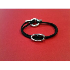 Bracelet Hermes Skipper en argent sur cordon noir Very well made.