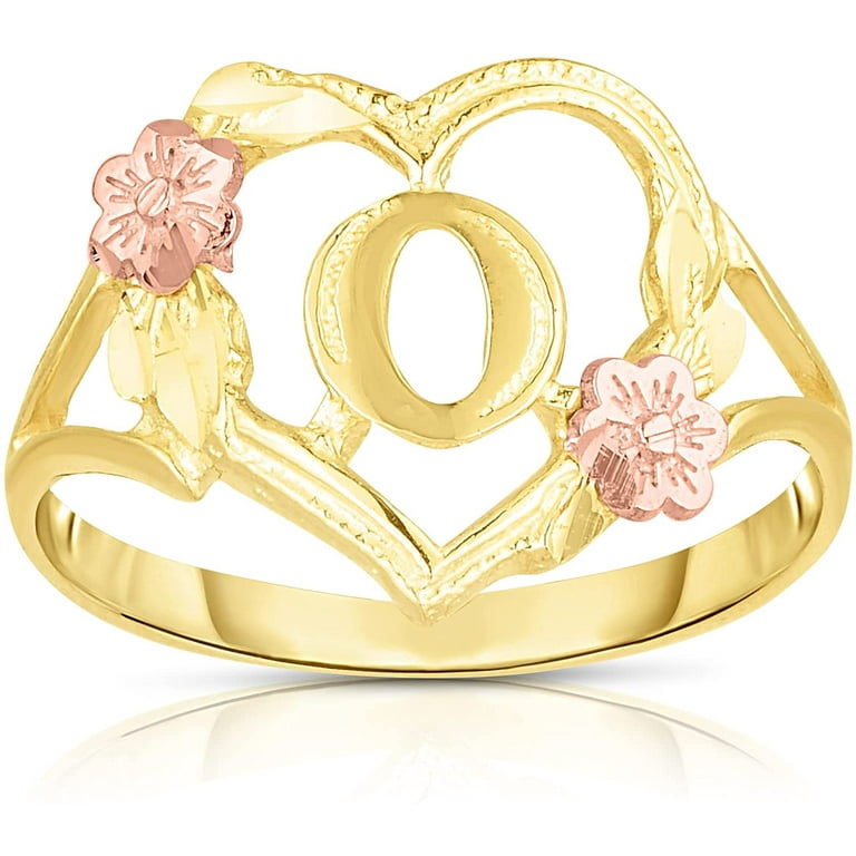 Floreo 10k Yellow Gold A Z Letter Initial Ring with Heart and Rose Gold Flower Design Sizes 4 9 Very well made.