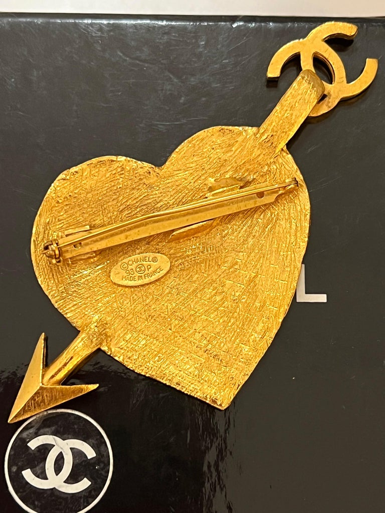 Chanel Runway spring summer 1993 CC arrow heart motif brooch For Sale at 1stDibs chanel 1993 runway chanel heart brooch chanel logo patch Very well made.