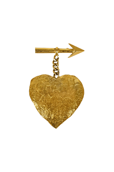 Chanel 24K Gold Plated Heart and Arrow Brooch 1993 P Foxy Couture Carmel Very well made.