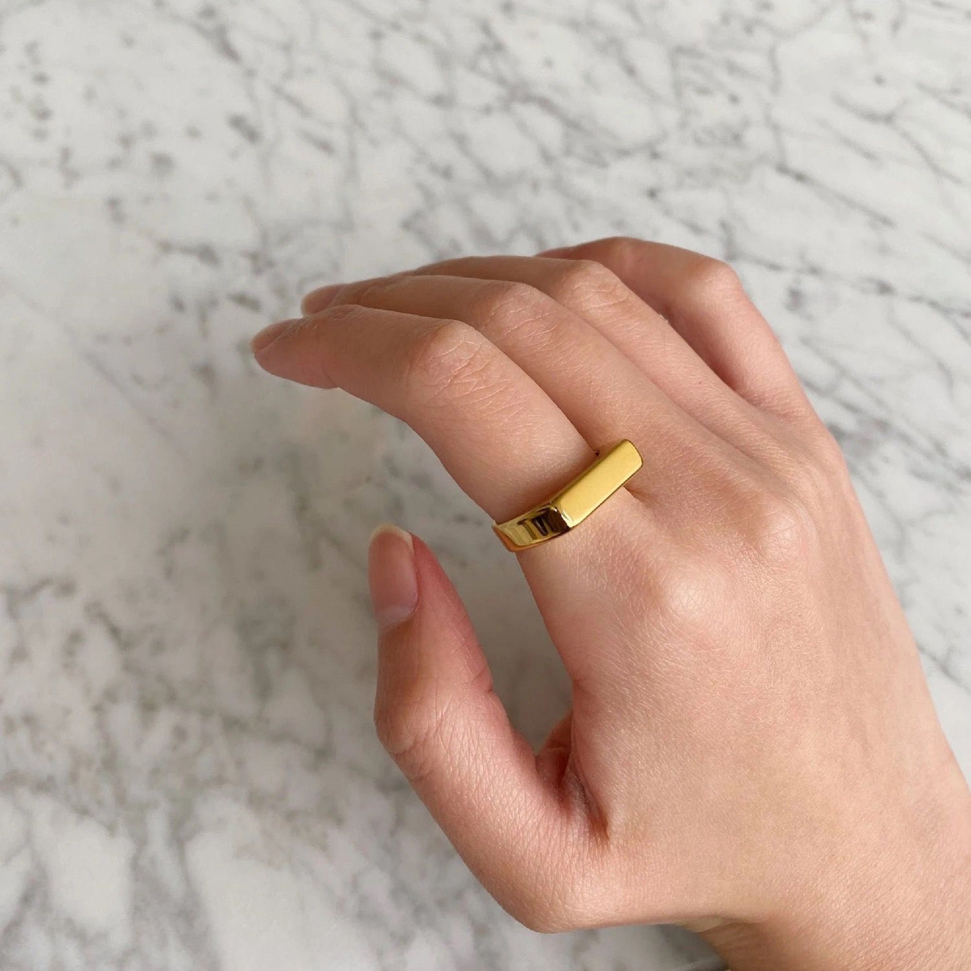 Simple 18k Gold Thick Rectangular Bar Signet Ring for Women Gold Custom Name Flat Bar Stackable Rings Minimalist Jewelry Silver Ross Ring Etsy Very well made.