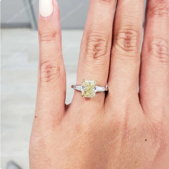 3CT Radiant Cut Yellow Moissanite Engagement Ring Canary Yellow Radiant Cut Diamond Wedding Ring 14k Solidgold Promise Ring Three Stone Ring Etsy Very well made.