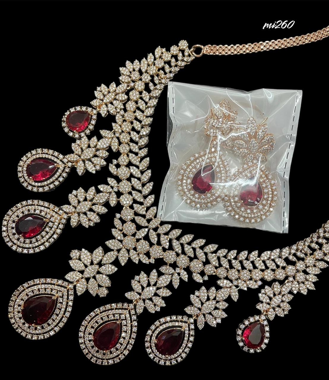 Gold Plated AD Jewelry Set Red Crystals Necklace CZ Diamond Necklace Bridal Jewelry Gold Diamond Jewelry Indian Traditional Jewelry Etsy Very well made.