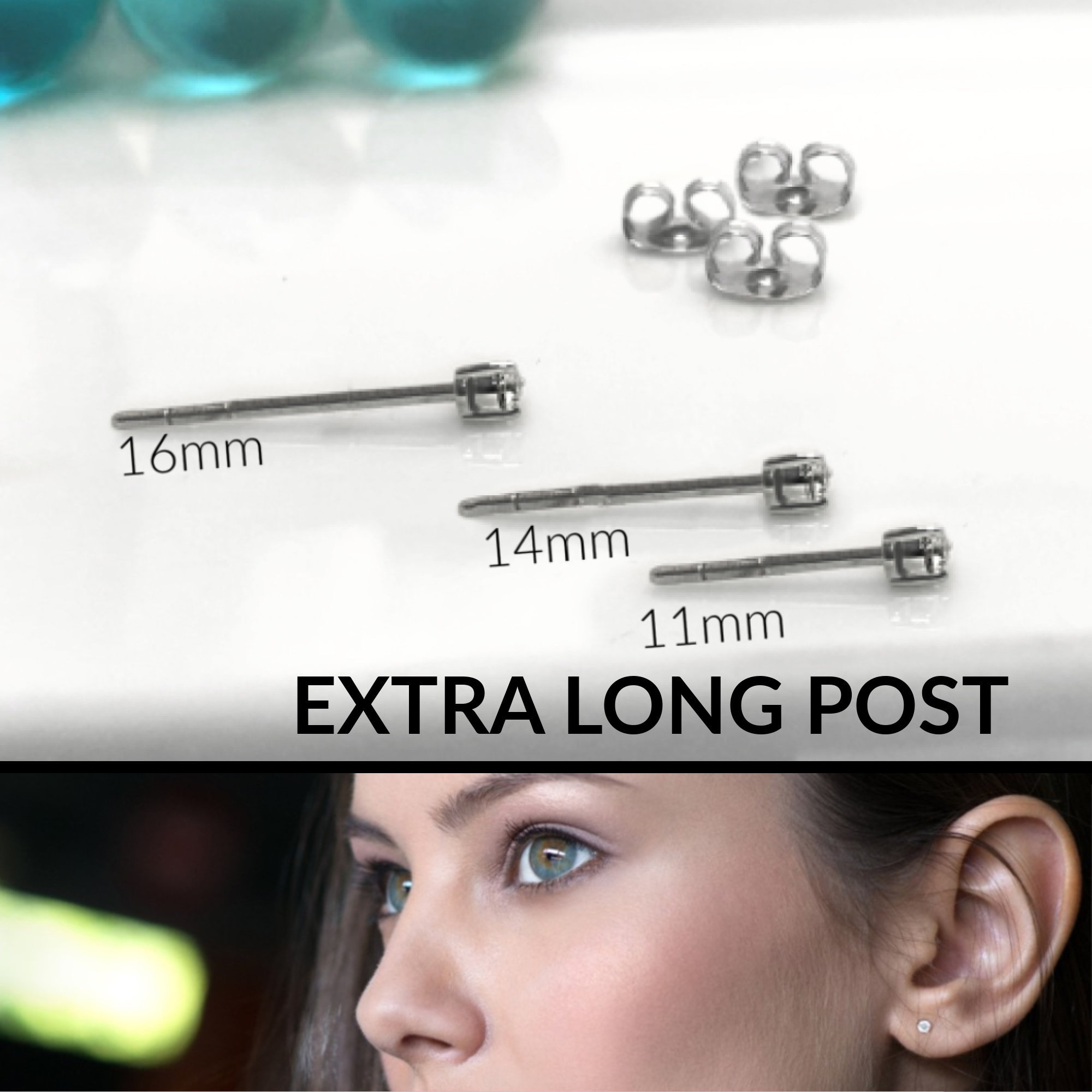 14K White Gold Diamond Stud Earrings Extra Long Post Earrings Three Prong Stud Earrings for Fat Thick Earlobes E501W Extra Long Post Etsy Very well made.
