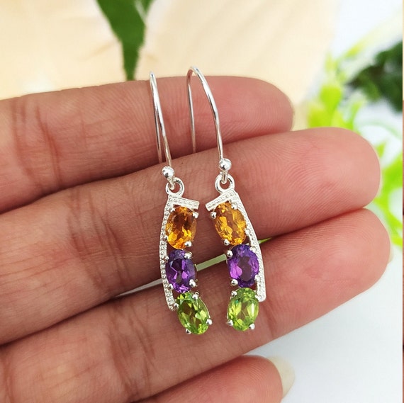 Delicate Multi Stone Statement Earrings citrine amethyst peridot Three Stone Earrings birthstone Earrings Gift for Her multi Earring Set 533 Etsy Very well made.
