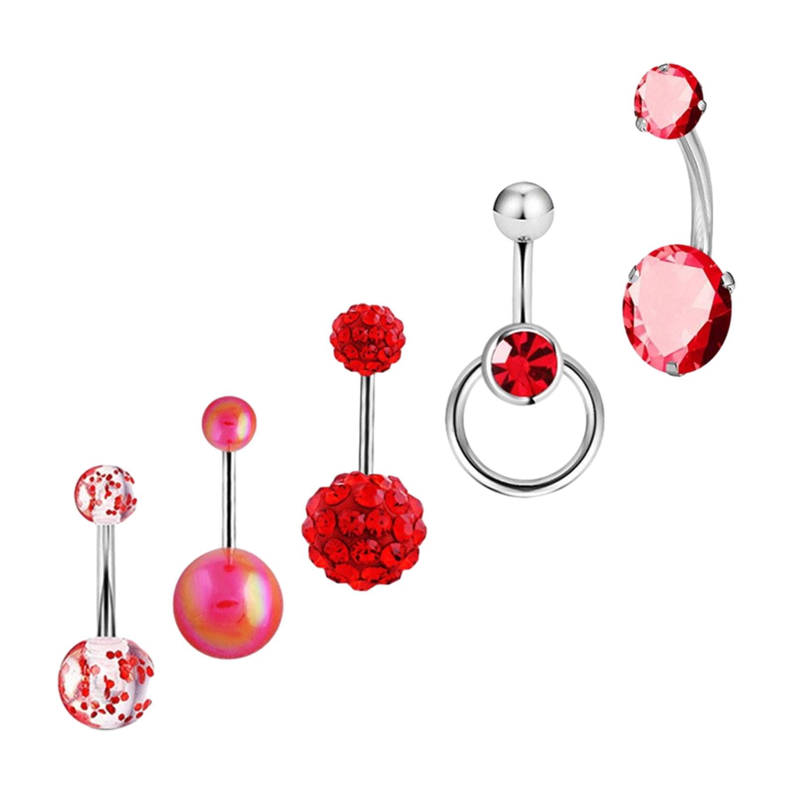 5 Pieces Belly Button Rings Belly Piercing Jewelry Zircon Fashion 10mm Short for Red Very well made.