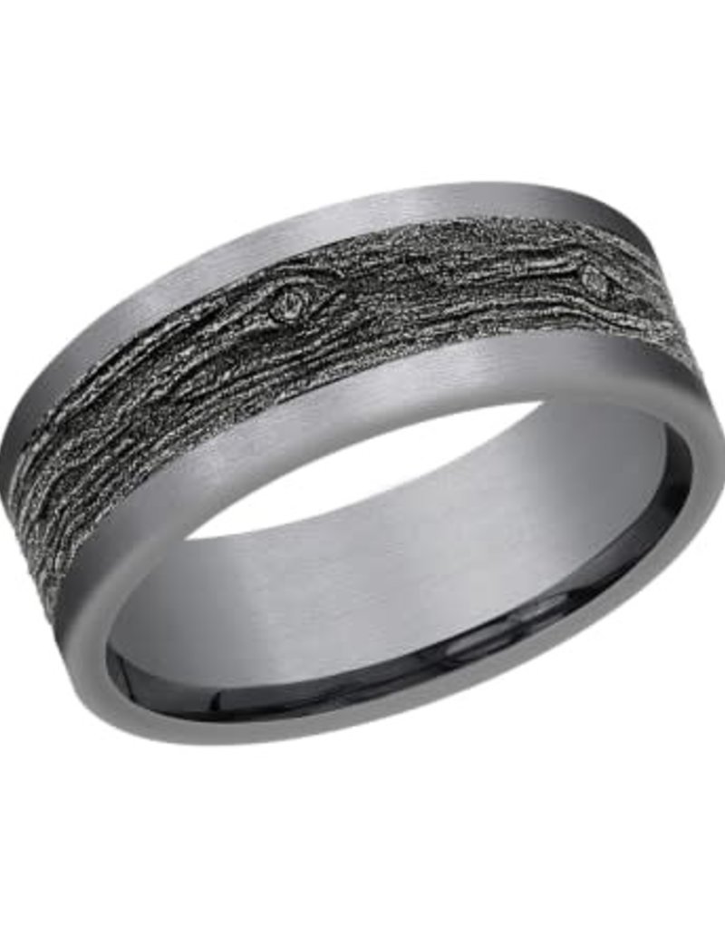 8mm Tantalum white gold wood look wedding band Princess Jewelers Very well made.