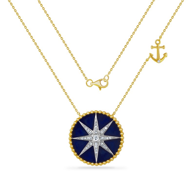 Shula NY 14K lapis compass necklace with 30 diamonds 0.13ct 20mm N896 Martin Jewelers Very well made.