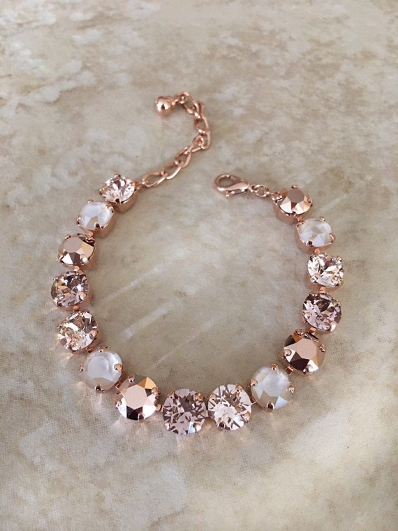 Necklace or Bracelet nude rose gold ivory cream morganite blush crystal tennis bracelet Bridal jewelry bridesmaid gift pink Very well made.