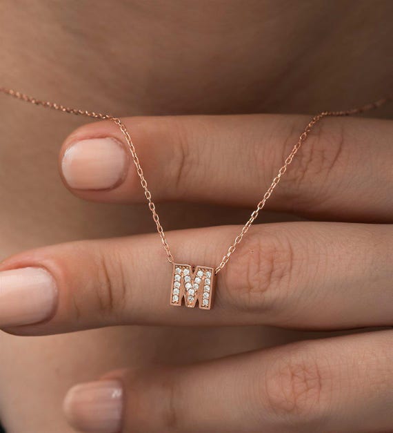 Letter m Necklace With Sparkling Crystals Rosegold Plated Silver A Perfect Personalized Gift for Everyday Elegance Gift for Girlfriend Etsy Very well made.