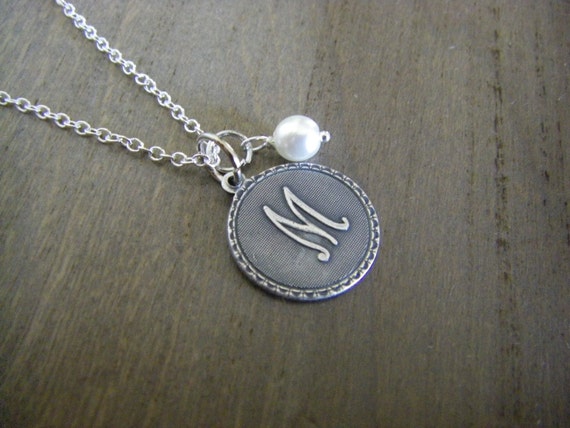 Initial M Letter M Necklace Sterling Silver Chain Silver Initial Wire Wrapped Glass Pearl Gift for Her Personalized Etsy Very well made.