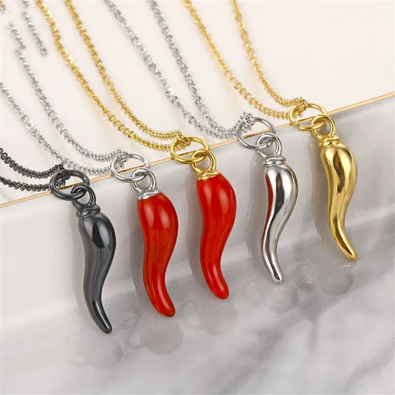 Italian Horn Red Necklace Black Gold Silvertone Black Lucky Charm Necklace Small Cornetto Pendant Jewelry for Women Amulet Horn Steel Chian GD Red Very well made.