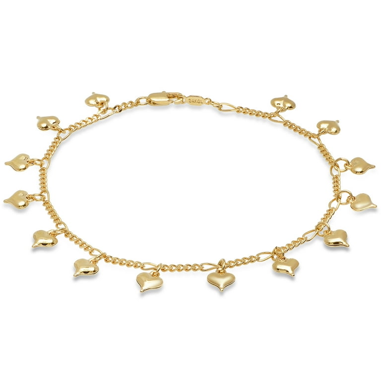2.6mm 14k Yellow Gold Plated Cable Heart Charm Anklet 9 inches Walmart Very well made.