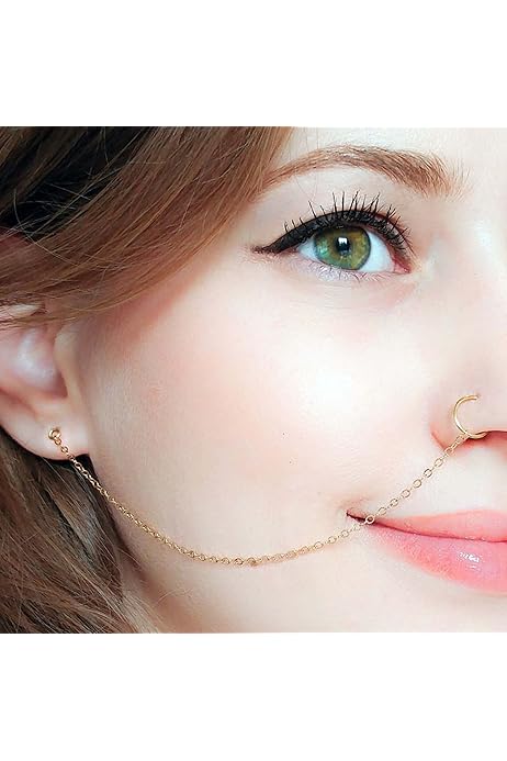 Amazon Honbay 2PCS Pierced Indian Nose Rings with Chain Nose to Ear Chain Clothing Shoes Jewelry Very well made.